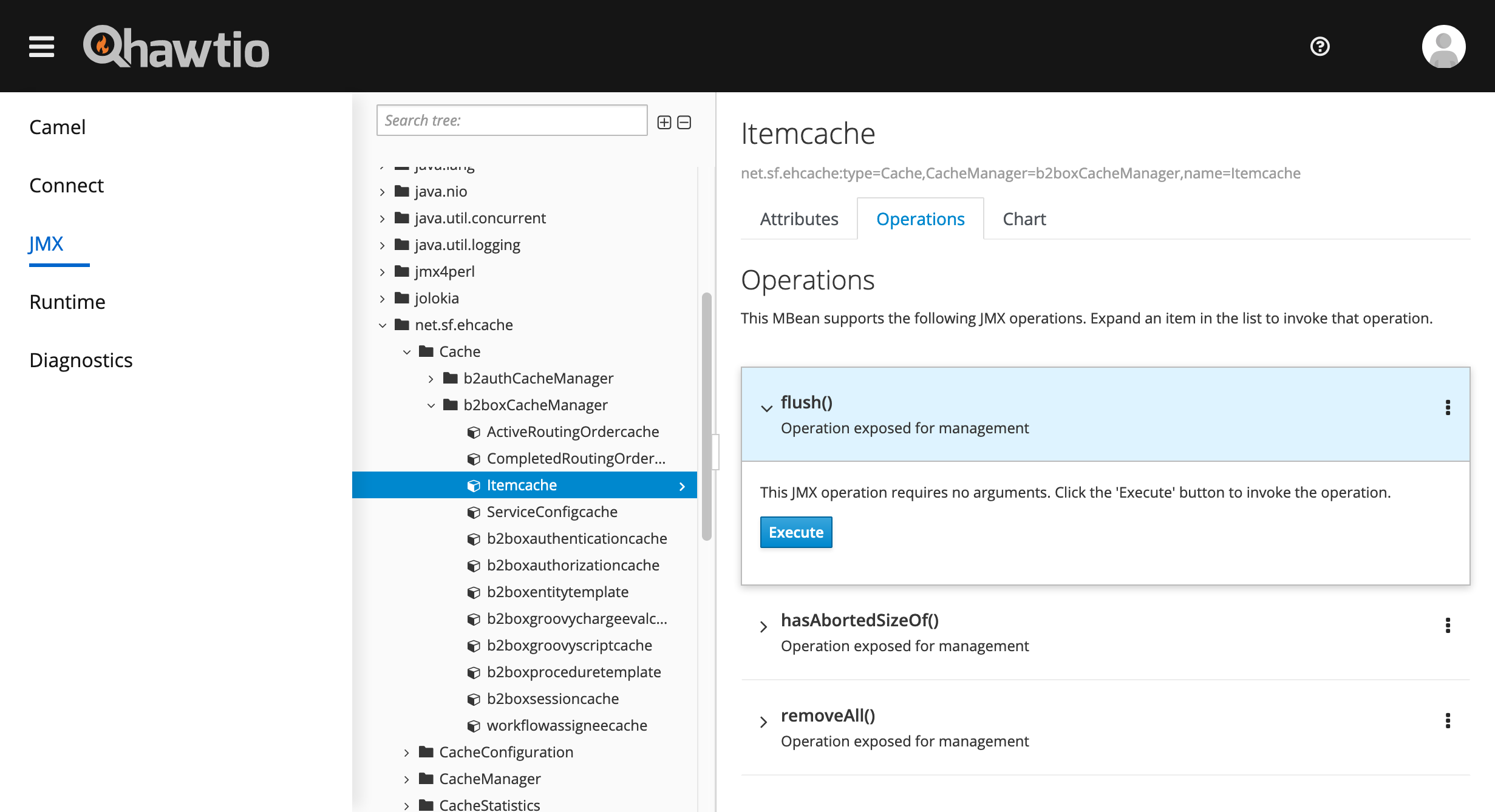 JMX (Java Management Extensions) is a Java technology that supplies tools for managing and monitoring. Using the JMX entry menu will give you access to a list of MBeans you can manage or monitor. You can also perform some actions depending on the MBean you select.