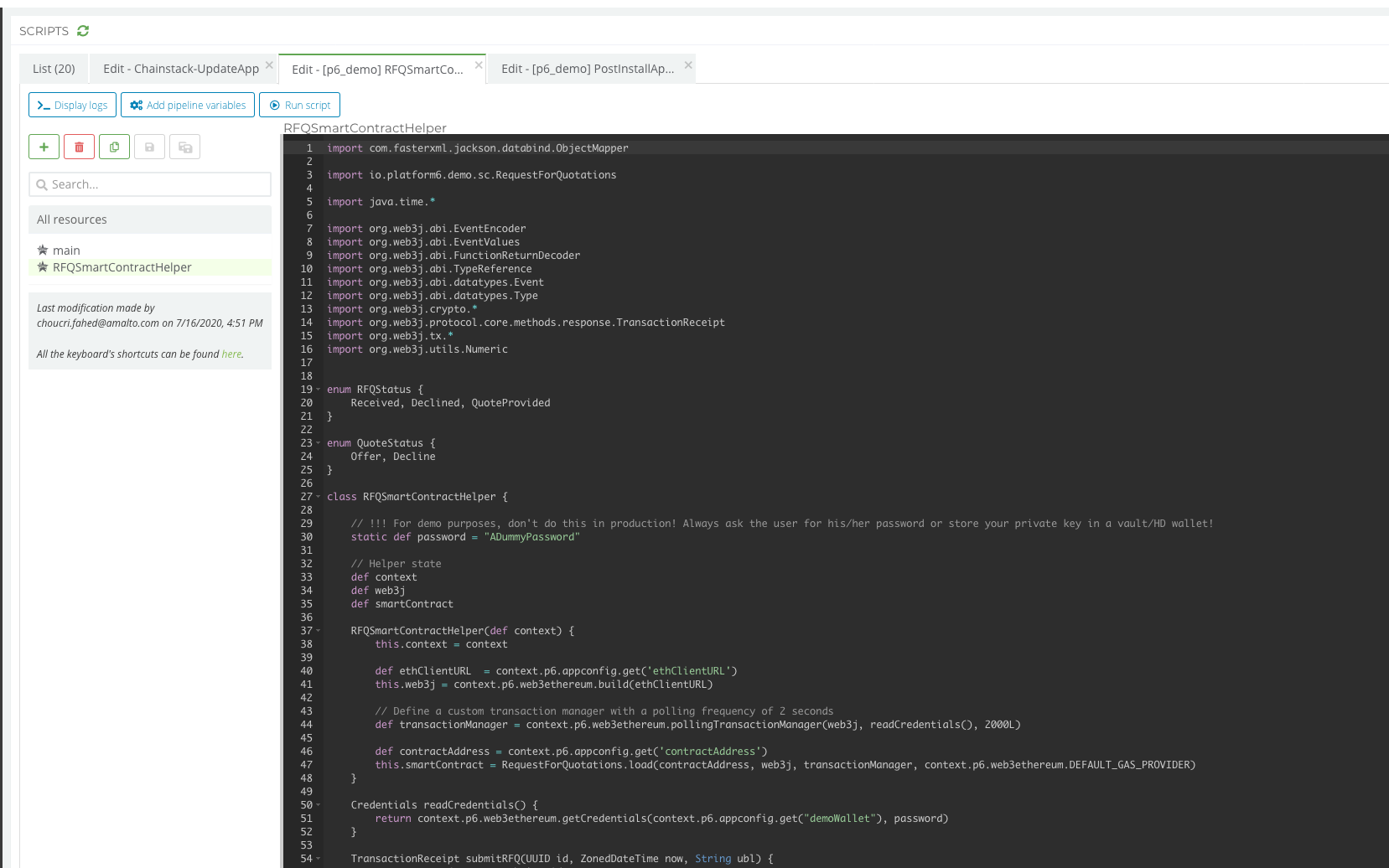 Go to the Scripts menu and edit the RFQSmartContractHelper script.