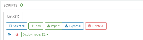 Click on the ‘Scripts’ menu entry, then on the green ‘+ Add’ button.