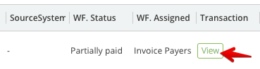 Once a link is created, a View button is automatically displayed in the transactions list and clicking on the button will open the linked message.