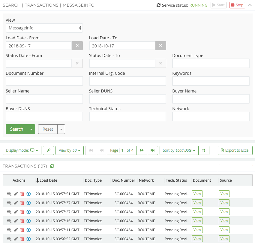 Through the Transactions service UI, you can start a new search with different search parameters.
